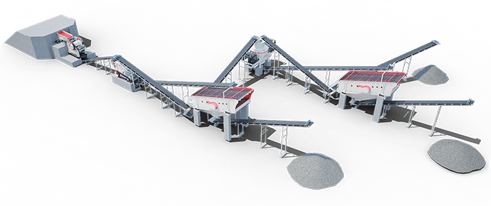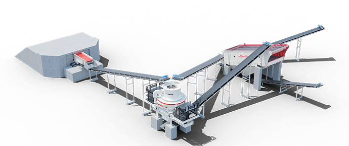 設(shè)備ZSW490×130給料機(jī)+PE-900×1200顎破+PF-1520反擊破+VSI1140制砂機(jī)+3YK3072振動篩+輸送機(jī)